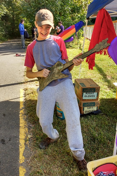 You've heard of air guitar - Young volunteer rocks out on "water guitar" found in Accotink Creek. |