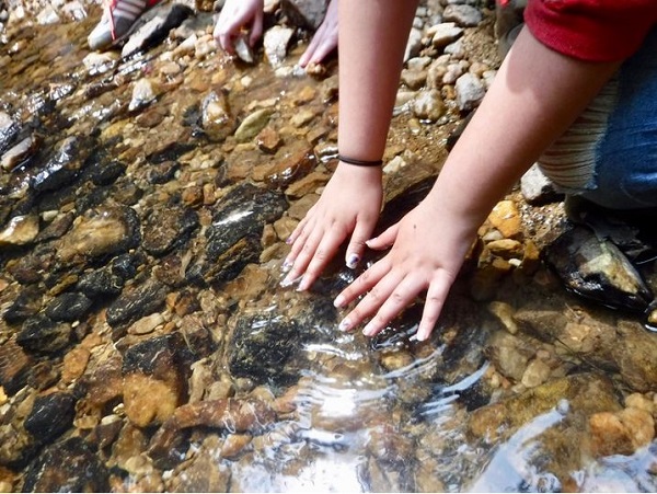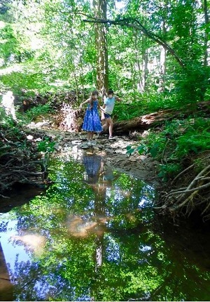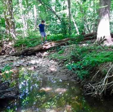 Since it was raining, we brought water and the collection bags from Long Branch into the classroom, instead of bringing the students outside. We didn't expect to find much life due to the repeated floods and the fact that we were a bit late in the season, but students were able to observe a good number of benthic macroinvertebrates, primarily caddisfly and midge larvae. Students also performed water quality testing to evaluate the temperature, pH, dissolved oxygen, nitrogen and phosphorous levels in the stream. I'm especially grateful to Mrs Davis and Mrs Breslin for arranging a full afternoon of Follow the Water activities with their respective classes! We were able to lead a presentation on watersheds, learning about stormwater issues, human impact, and how this affects the Little Run Elementary campus. The primary question that we're investigating is "What happens to the rain that falls on the schoolyard?". Students were especially intrigued by the contrast between aerial photos of the area from the 1930s and satellite pictures from now, showing how the landscape has changed from mostly forest and fields to suburbs with an abundance of impervious surfaces. Afterwards we did a stormwater mapping exercise, exploring the campus and identifying storm drains and other stormwater features. Apparently Pennywise the Clown has done much to promote stormwater awareness in today's youth. Joe Hirz led the planting activities in Little Run's "Watershed Garden" with native plants from Earth Sangha, obtained through a "Plant Grant" by the Friends of Accotink Creek. Joe's expertise as a landscape designer and enthusiastic educator has been enormously helpful in the creation of the garden. Volunteers helped with the plantings and led a habitat and biodiversity station. Then we Followed the Water all the way down to beautiful Long Branch, where students had the opportunity to explore the "Forbidden Forest" and do some experiential learning along the stream.