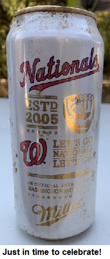 Thank you, volunteers of The Vistas! Friends of Accotink Creek members supported and participated in a community cleanup along Americana Drive. This cleanup was planned and led by the Fairfax County Restoration Project, with great support from both the community and County partners. FACC was delighted to support this project. An amusing find among the trash was an uopened can of Washington Nationals beer, apparently sitting in the woods for years until it finally brought luck in the recent World Series. FCRP did excellent work bringing in partners to support the project, and doing reaching out to the community for volunteers. We had 30+ participants, and in 2 hours, we collected an estimated 62 bags of trash, and nearly filled a dumpster provided by Fairfax County Public Works. This is far less than what was collected during our last cleanup on Presidents Day, a hopeful sign that the habit of littering and dumping here may be declining. Partners: