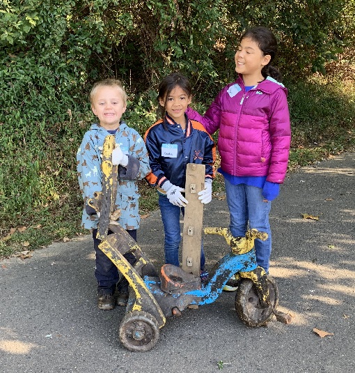 Young volunteers display their prizes from the creek. |