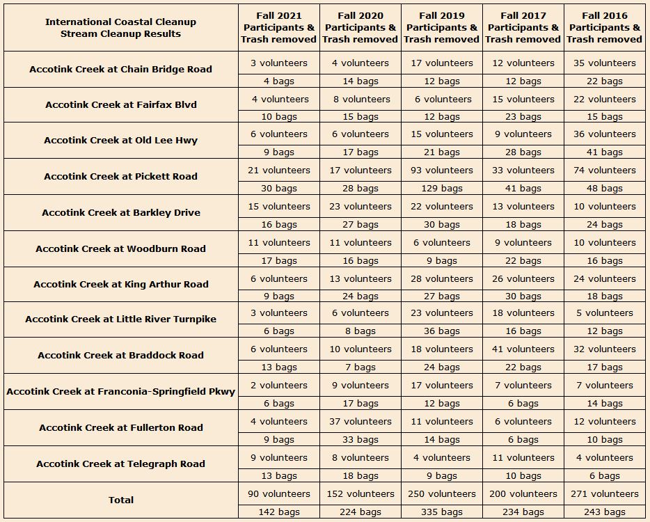 GET YOUR BRAIN WET! Join Friends of Accotink Creek in next year's International Coastal Cleanup in September and the Potomac Watershed Cleanup in April!