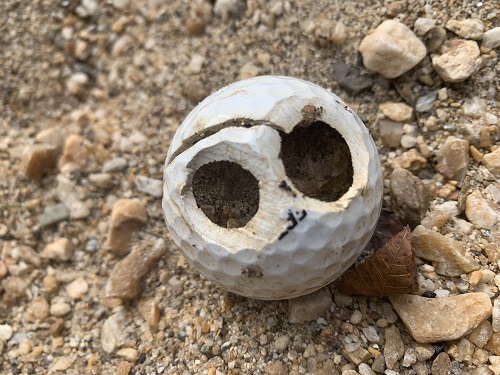 The Halloween season is here - The haunting stare of a golf ball jack-o-lantern |