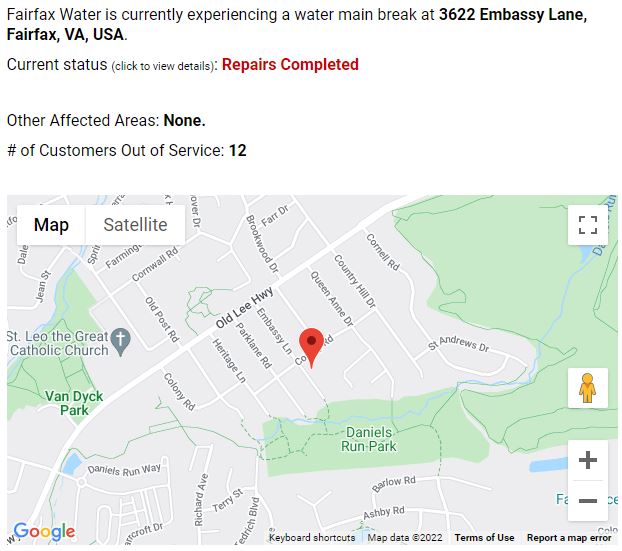 Our letter to Fairfax Water expressed our concern: