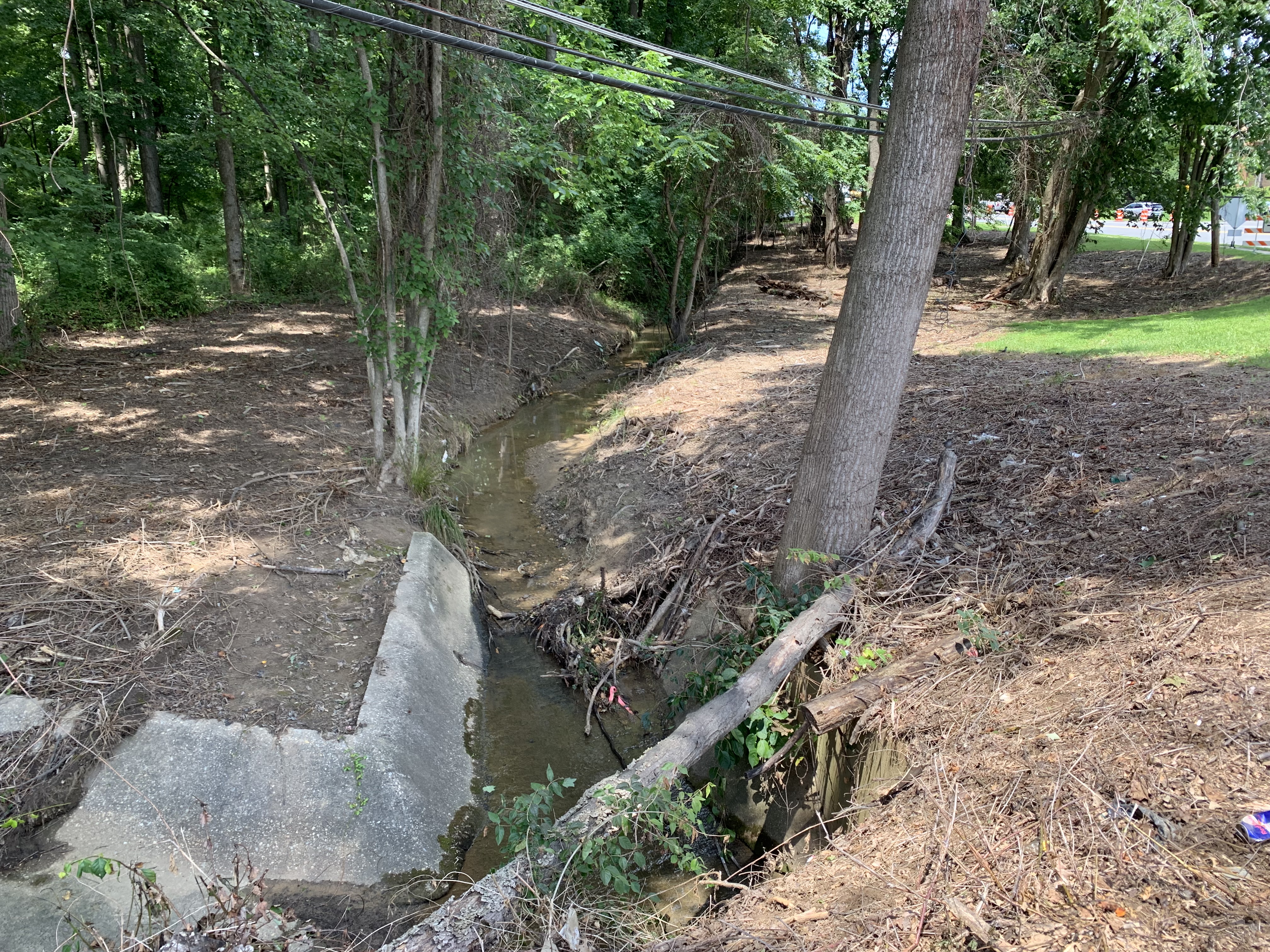 The headwaters of Harmark Branch, on the Oakton HS campus, have been recently subjected to mysterious clearing down to the banks.