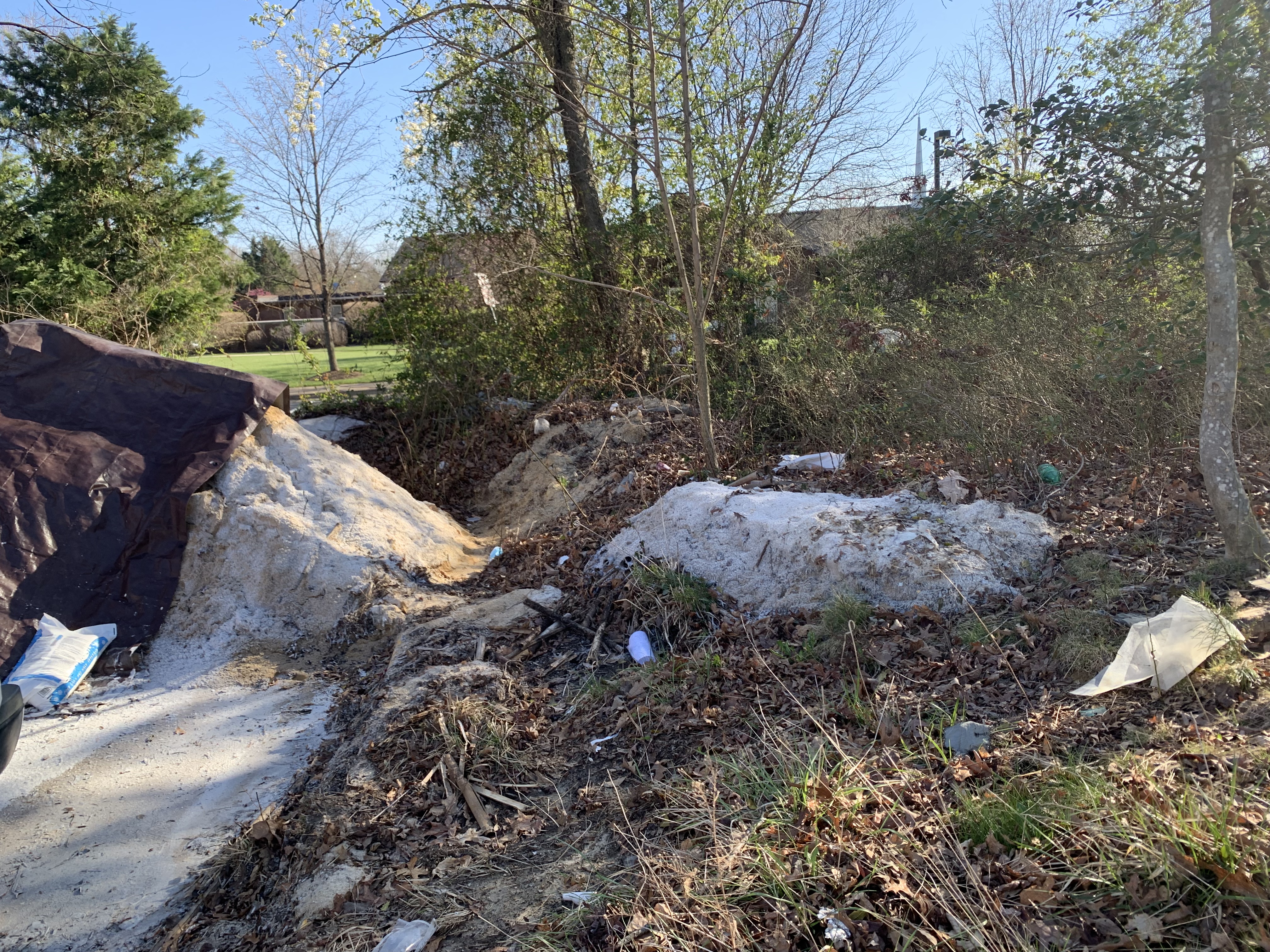 Here is an example of how NOT to store winter salt. The location is not in the Accotink Creek watershed, but rather it is affecting neighboring Pohick Creek. Winter salt runoff causes identified harms to aquatic wildlife and increasingly threatens drinking water supplies, as described in the the 2017 Accotink Creek Chloride TMDL. A Winter Salt Management Toolkit: (Summary - Full Toolkit) has been produced by the Salt Management Strategy. The Toolkit is a set of voluntary recommendations for VDOT, local jurisdictions, and private property owners. Someone at University Mall did not read it carefully enough. Learn more about citizen monitoring of salt contamination of streams with Winter Salt Watch