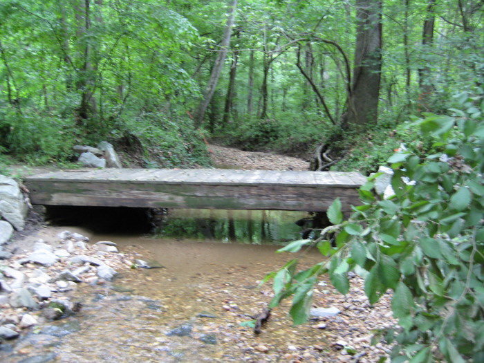 May, 2008: Tributary bridge below Lake Accotink Park office, 102' wide. Another error?