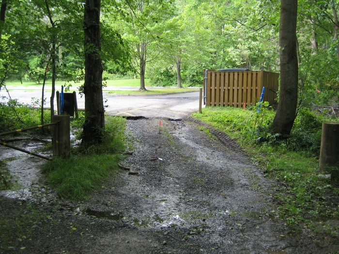 May, 2008: Emerging to Lake Accotink dam parking area, and taking out one last tree