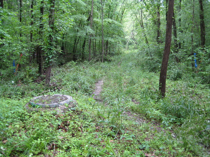 May, 2008: East of Hunter Village Dr, overlapping sewer cut, 35' wide
