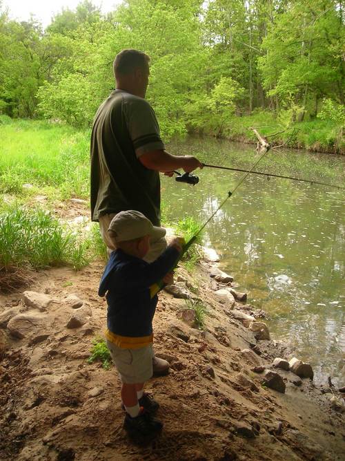 What a great day for introducing a three-year old to trout fishing at Accotink Creek!