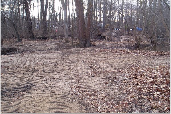 Large tire tracks on Accotink Creek storm scoured bank.