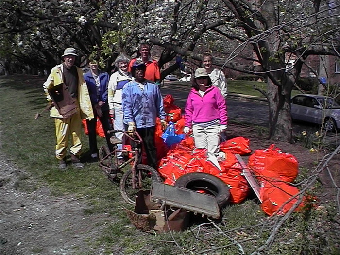 Eleven volunteers assisted in the cleanup: Jack Buckley (Friends of Accotink Creek and SHA Site Coordinator), Lisa Lofton, Eleanor Hahn, Chris Daubert, Karen Cook,Pam Miller, Julie Varron, Robert Babingon Smith, Tom Easton, Ann Oeland and her son Danny. The group collected 37 bags of trash - bottles, cans, plastic bags, Styrofoam, assorted plastic, etc. In addition they picked up two tires, an hibachi, a bicycle and a car radiator