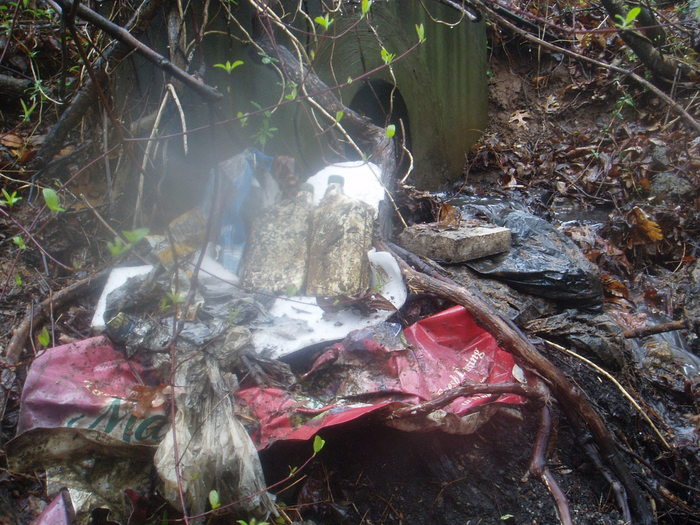Trash gathered from a storm drain outlet across street from Ravensworth Shopping Center near Braddock Road. The two motor oil bottles were full of used motor oil.